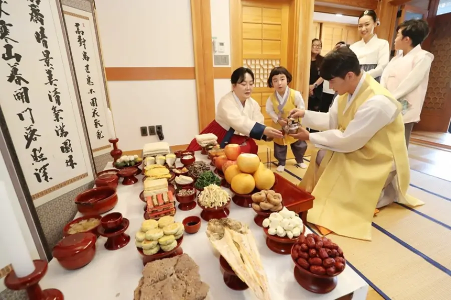Trong buổi sáng đầu năm, người Hàn Quốc cử hành lễ Charye – nghi thức tưởng nhớ tổ tiên đã tồn tại từ thời Joseon và vẫn được gìn giữ gần như nguyên bản cho đến ngày nay. Để thực hiện Charye, mỗi gia đình đều chuẩn bị một bàn thờ trang trọng gọi là cha-sang, được bày biện theo những quy tắc vô cùng chặt chẽ. Mỗi món ăn không chỉ để dâng lên tổ tiên mà còn mang ý nghĩa tượng trưng sâu sắc: cá tượng trưng cho sự dồi dào, thịt bò thể hiện sự sung túc, trái cây đại diện cho sự viên mãn, còn bánh tteok được xem như lời chúc trường thọ. Tất cả đều được sắp xếp đúng vị trí theo trật tự âm – dương và ngũ hành.
