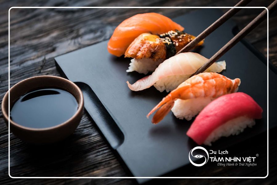 Nhắc đến ẩm thực Nhật Bản không thể không nhắc đến sushi, sushi được làm bằng nhiều nguyên liệu khác nhau phù hợp với khí hậu mỗi mùa. Đi tour du lịch Nhật Bản trọn gói, du khách sẽ có những trải nghiệm văn hóa ẩm thực độc đáo, riêng biệt của Nhật Bản.Đi du lịch Nhật Bản trọn gói vào bất kỳ mùa nào cũng mang đến trải nghiệm đáng nhớ. Tùy theo sở thích, bạn có thể chọn tour du lịch Nhật Bản giá rẻ, cao cấp hoặc hành trình đặc biệt theo mùa. Du lịch Tầm Nhìn Việt hiện khai thác nhiều tour Nhật Bản 2025 – 2026, bao gồm cả các gói từ Hà Nội và TP.HCM, với lịch trình linh hoạt, dịch vụ uy tín và giá cả minh bạch. Liên hệ ngay để được tư vấn chi tiết về giá tour và nhận ưu đãi hấp dẫn!