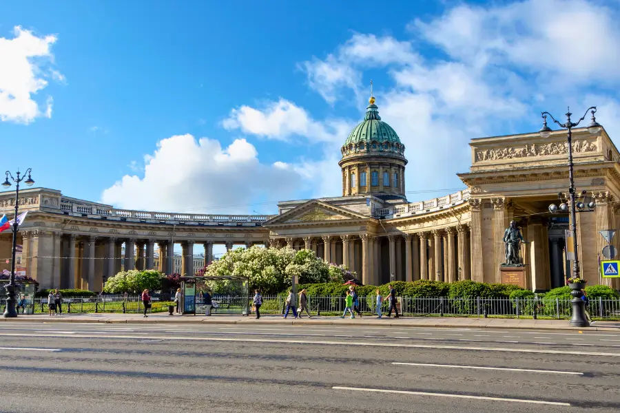 - Thánh đường Đức Mẹ Kazan (bên ngoài) - được khởi công xây dựng vào năm 1733 theo lệnh của hoàng hậu Anna Ioanovna để thể hiện sự tôn kính với Đức Mẹ Kazan.